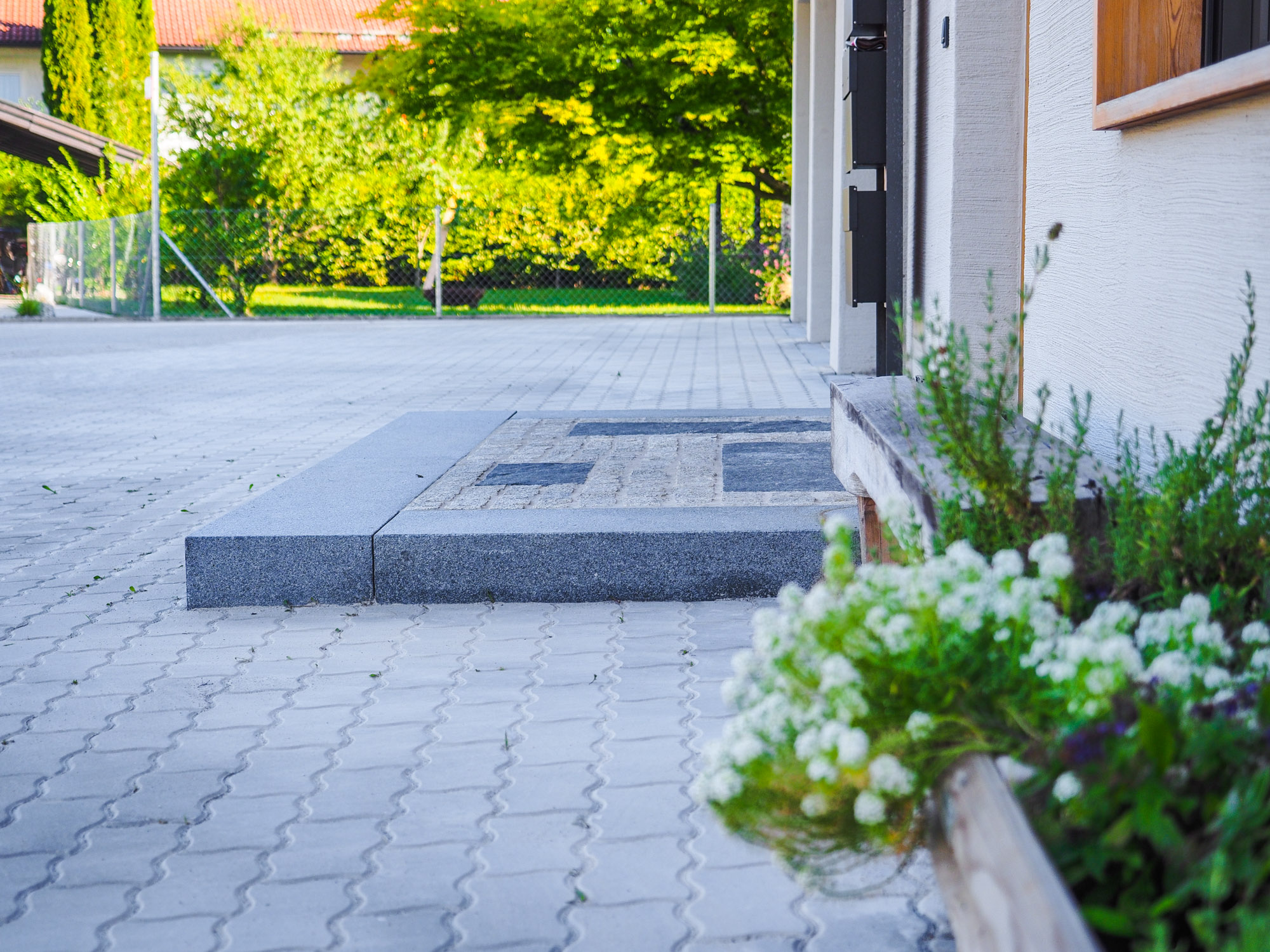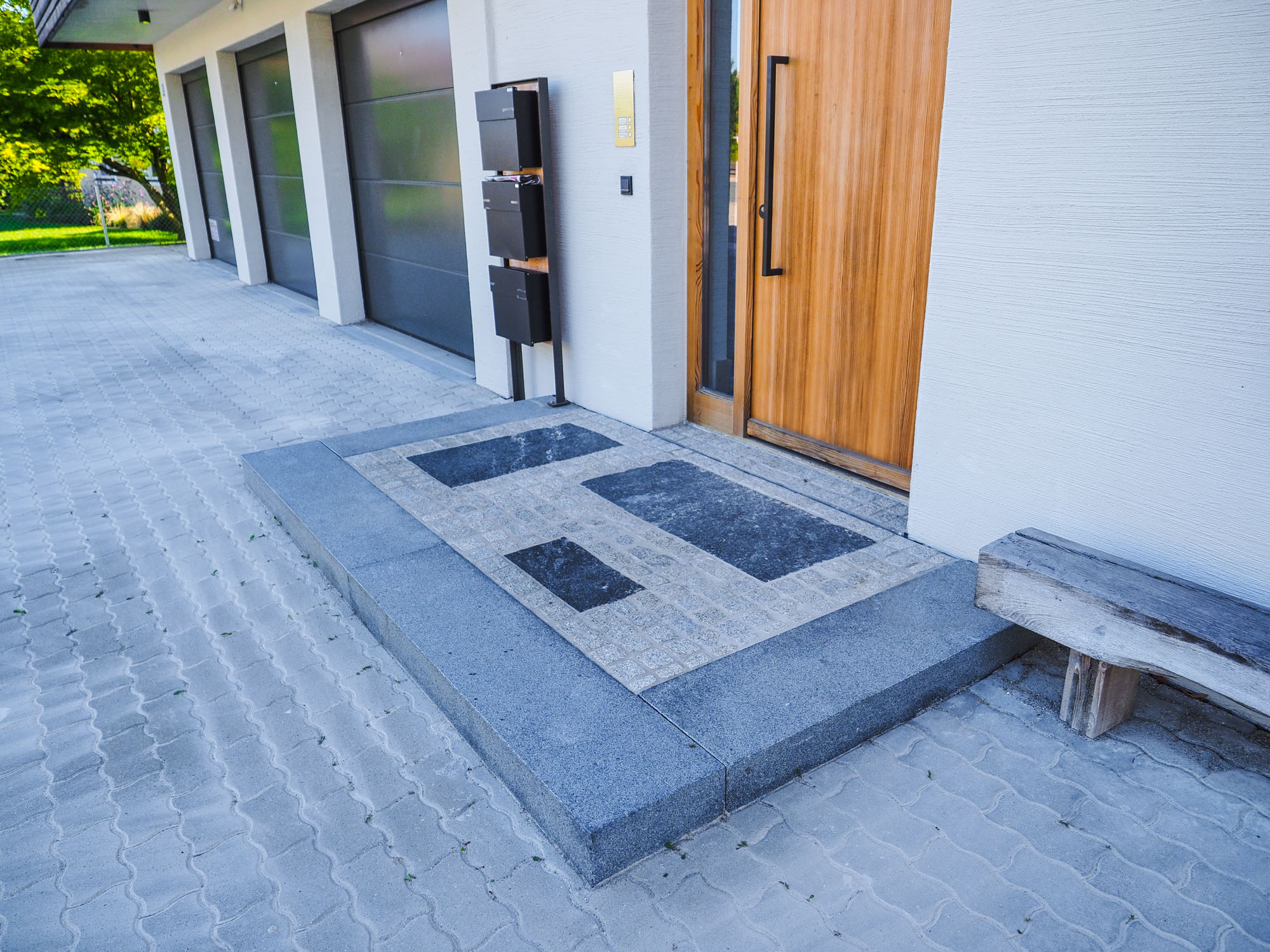 Wir haben kürzlich einen klassischen Vorplatz für ein Mietobjekt gestaltet und dabei eine charmante Atmosphäre geschaffen. Für den Bereich verwendeten wir das Wellenpflaster, dies verleiht dem Bereich eine interessante Struktur und einen einzigartigen visuellen Effekt. Zusätzlich haben wir den Eingangsbereich mit einem Natursteinpodest erhöht, um eine markante und einladende Erscheinung zu erzeugen. Der Naturstein verleiht dem Eingangsbereich eine natürliche Schönheit und schafft einen eleganten Übergang zum Innenraum des Mietobjekts. Durch diese gestalterischen Entscheidungen haben wir einen Vorplatz geschaffen, der den Charakter des Gebäudes unterstreicht und den Bewohnern und Besuchern einen ansprechenden Empfang bietet.